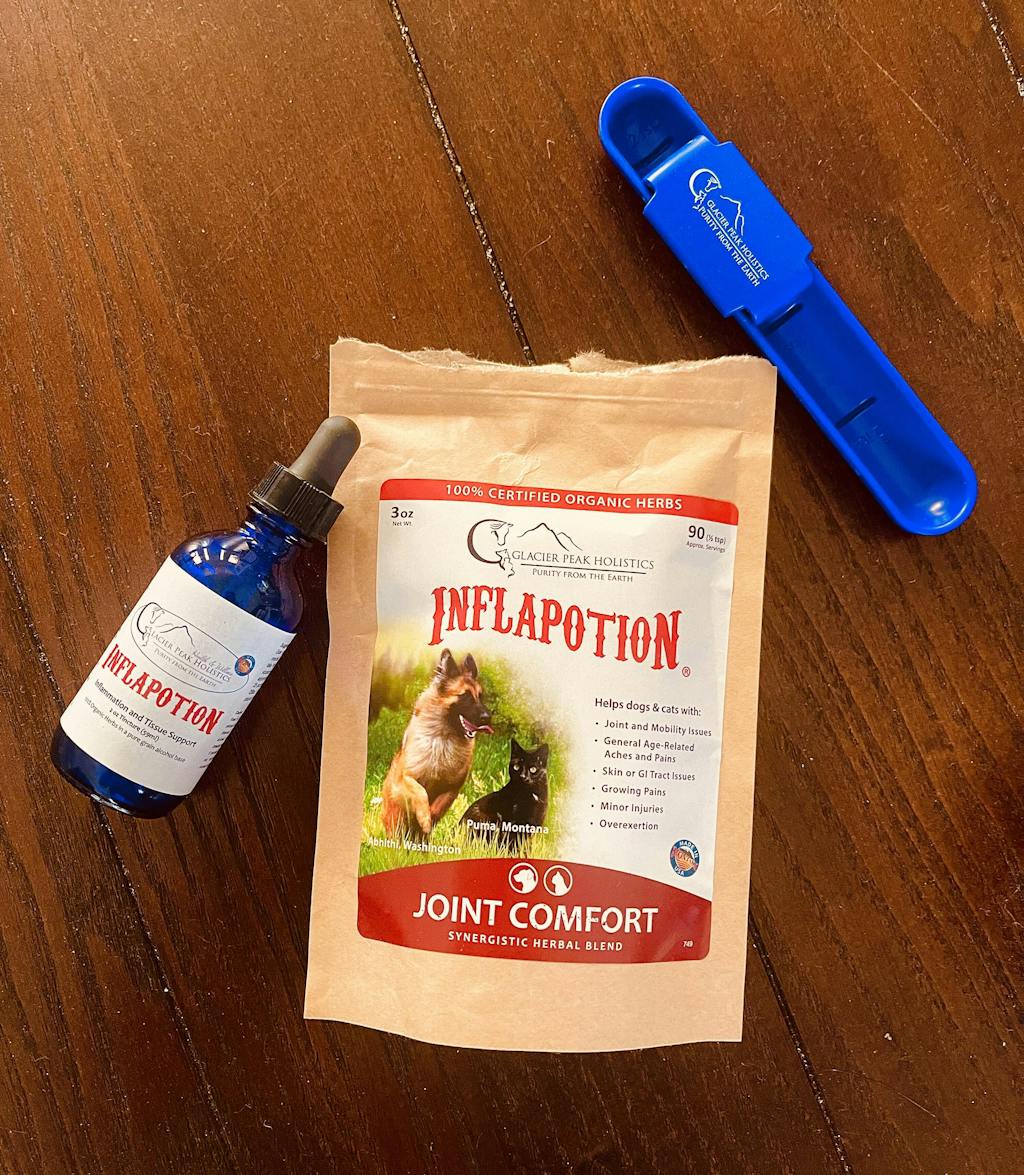 Inflapotion® is a 100% organic herbal remedy for addressing dog inflammation that contains natural anti-inflammatory herbs traditionally used to support everyday aches and pains. Glacier Peak Holistics Inflapotion® may provide support to dogs within 24-48 hours when used as directed for: