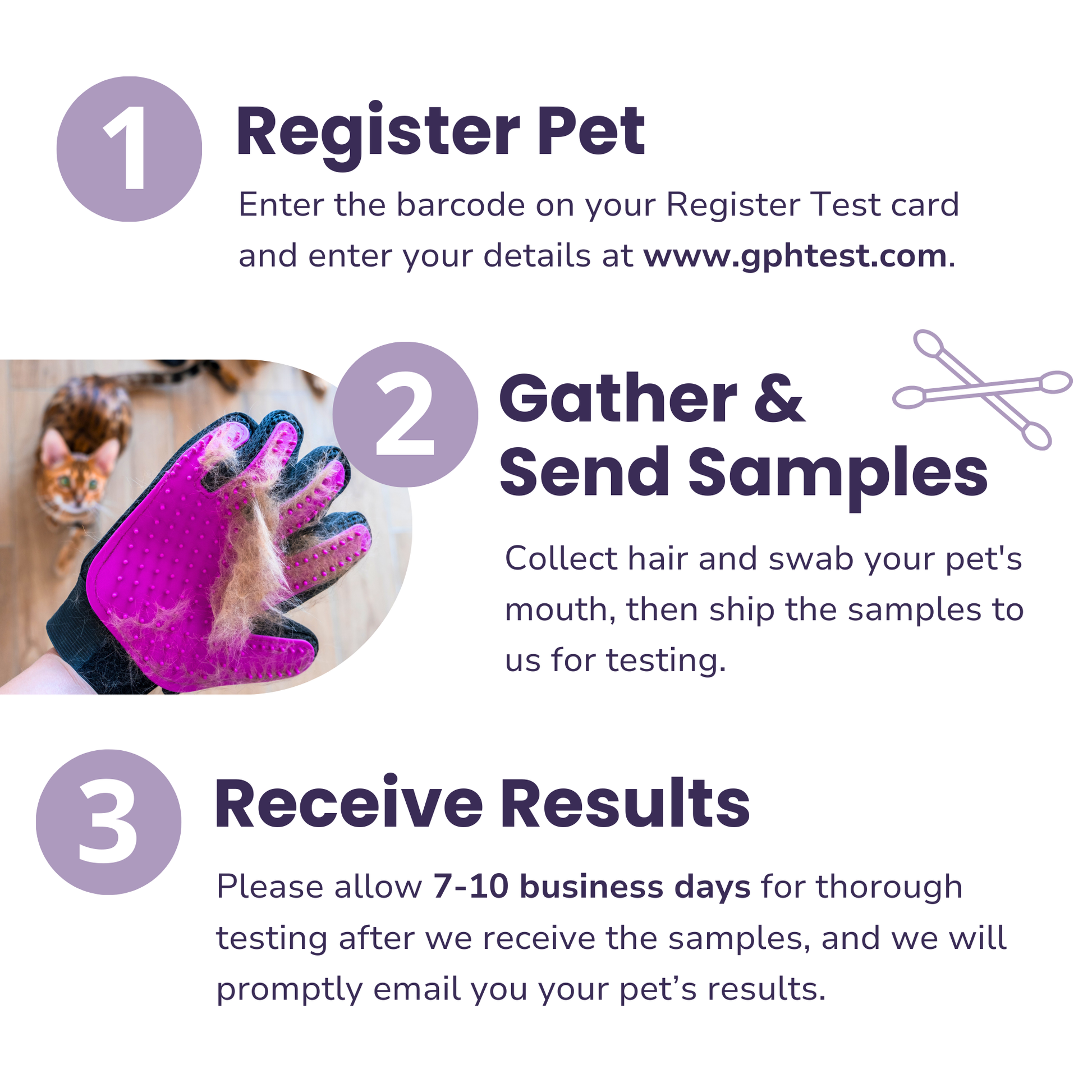 • For hairless pets, make sure to get the swabs very wet with saliva from your pet's mouth. We can still run the test this way.